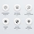 Il caricatore wireless magnetico QI2.2 non è solo un caricatore, ma un aggiornamento dello stile di vita. Ricarica rapida, luce ambientale e audio Bluetooth di qualità superiore in un unico hub salvaspazio che mantiene il vostro spazio di lavoro organizzato ed elegante.