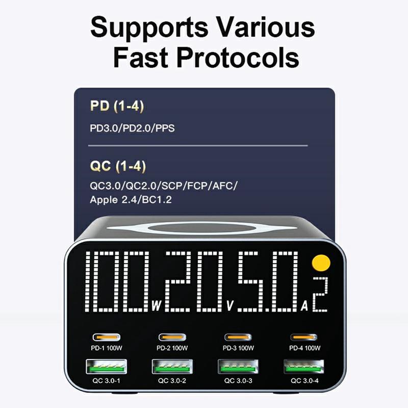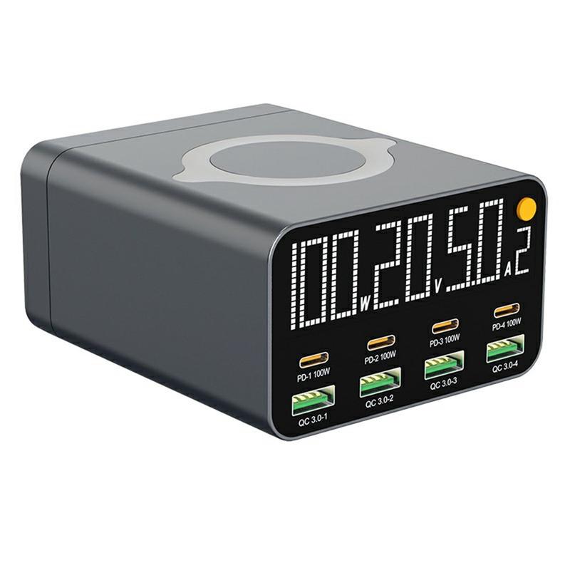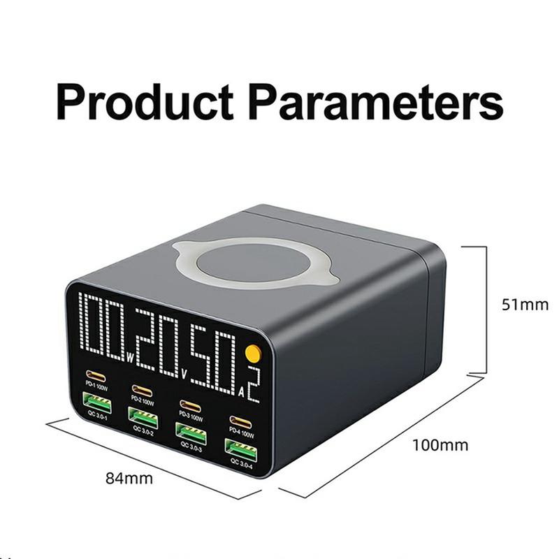 Stazione di ricarica da tavolo WLX-M1 120W - Caricatore rapido USB-C GaN a 8 porte con ricarica wireless (spina UE)