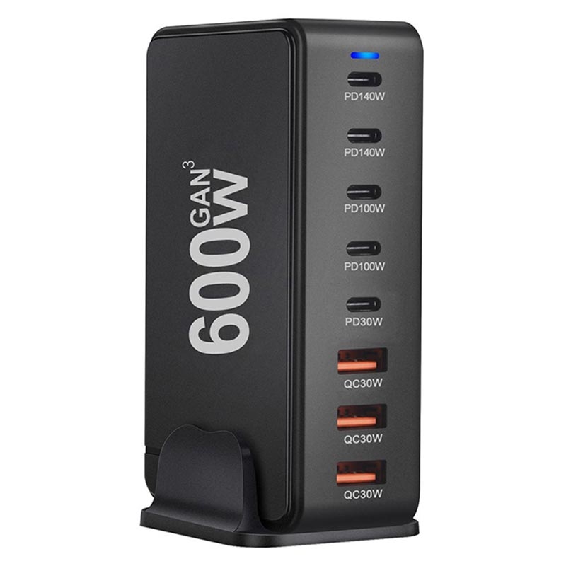 Stazione di ricarica da tavolo GaN da 600W - 8 porte (5x USB-C + 3x USB-A) caricatore rapido PD3.1, fino a 140 W USB-C, distribuzione intelligente dell'alimentazione