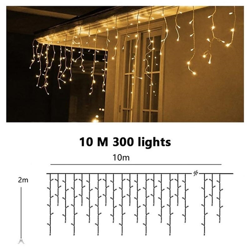 - Design a tenda a cascata con 300 LED bianchi caldi per una luce morbida e invitante