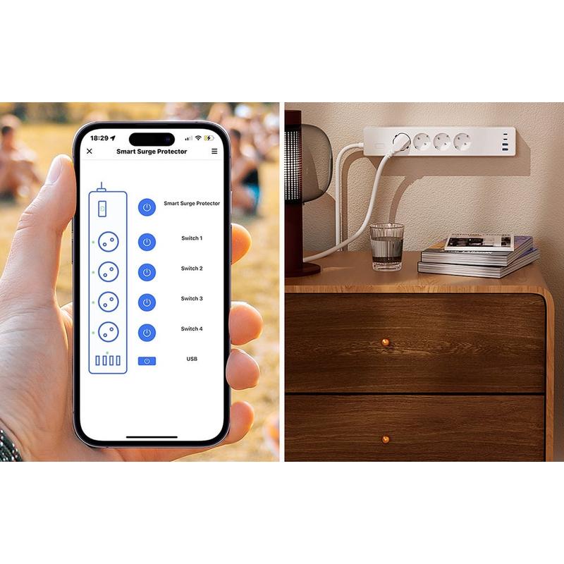 Utilizzando l'app Meross o un ecosistema compatibile con Matter, è possibile accendere o spegnere in modo indipendente ciascuna delle quattro prese e controllare il gruppo di porte USB. Gestite i vostri dispositivi da qualsiasi luogo, a casa, al lavoro o in viaggio.