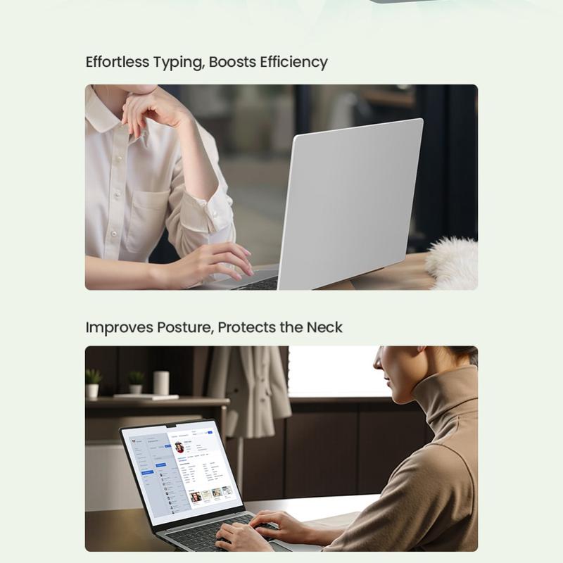 - Ricerche ergonomiche dimostrano che l'elevazione dello schermo del laptop può ridurre significativamente l'affaticamento del collo e degli occhi nel tempo.