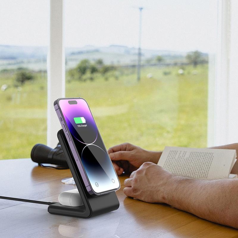 Semplificate la vostra routine di ricarica con il caricatore wireless magnetico M2A 2-in-1, un accessorio da scrivania elegante e potente progettato per tenere alimentati contemporaneamente l'iPhone e gli AirPods. Grazie al suo preciso allineamento magnetico, al design a visione verticale e agli standard di sicurezza certificati, è il compagno ideale per l'uso quotidiano a casa, in ufficio o a letto.