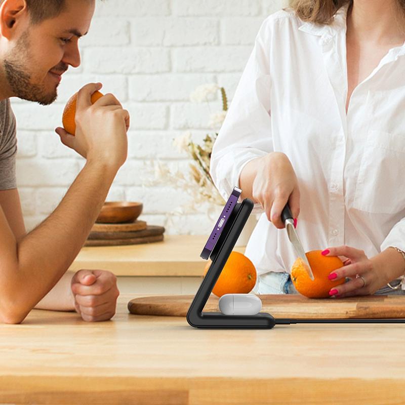 Utilizzate il telefono a mani libere mentre si ricarica: ideale per videochiamate, visione di contenuti o lettura di notifiche. Il design verticale ergonomico mantiene lo schermo visibile e l'area di lavoro in ordine.