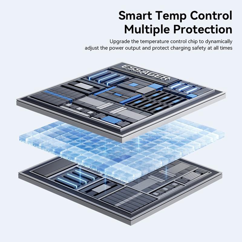 L'avanzato sistema di gestione termica regola automaticamente il calore per una ricarica sicura, affidabile ed efficiente dal punto di vista energetico, proteggendo i dispositivi durante l'uso prolungato.