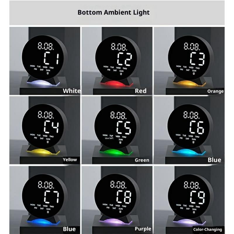 - Luce ambientale colorata - Aggiunge un'atmosfera accogliente grazie alla luce soffusa della base e alla visualizzazione animata dei secondi.