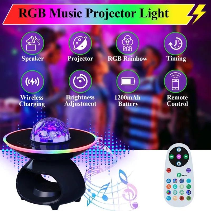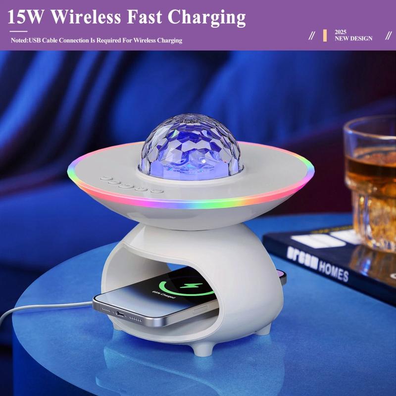 TCSP-001-C Lampada proiettore di stelle 4 in 1 - Caricatore wireless da 15 W, altoparlante Bluetooth 5.0 e luce d'atmosfera RGB