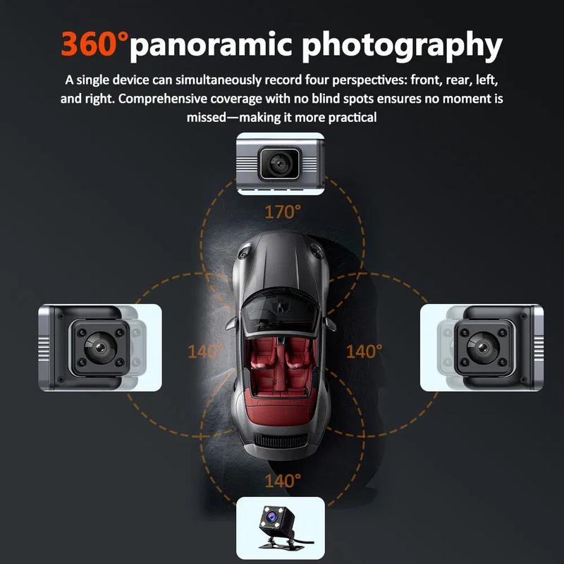 Dash Cam da 3.0" IPS 1080P a 4 obiettivi con registrazione anteriore, posteriore e laterale - DVR veicolo grandangolare