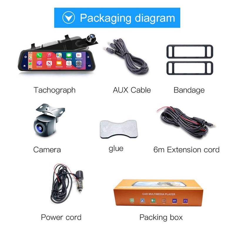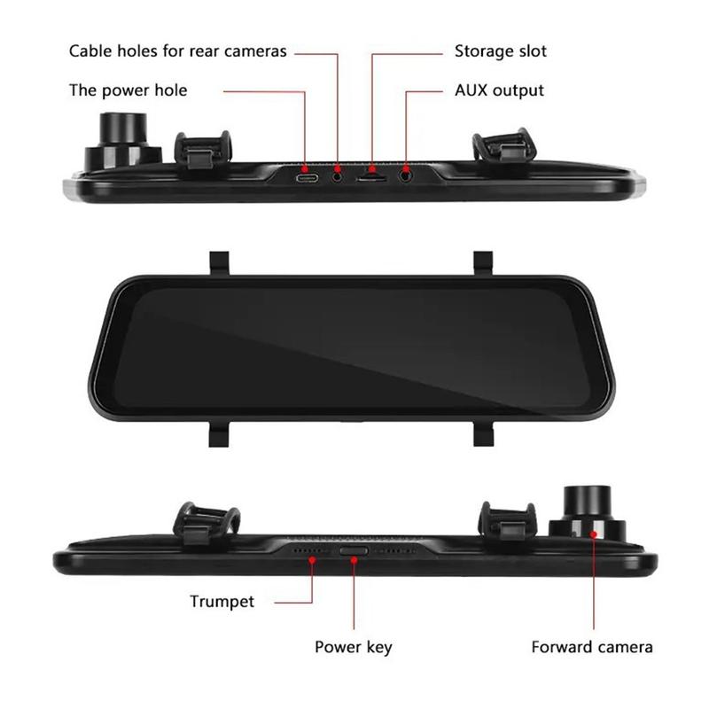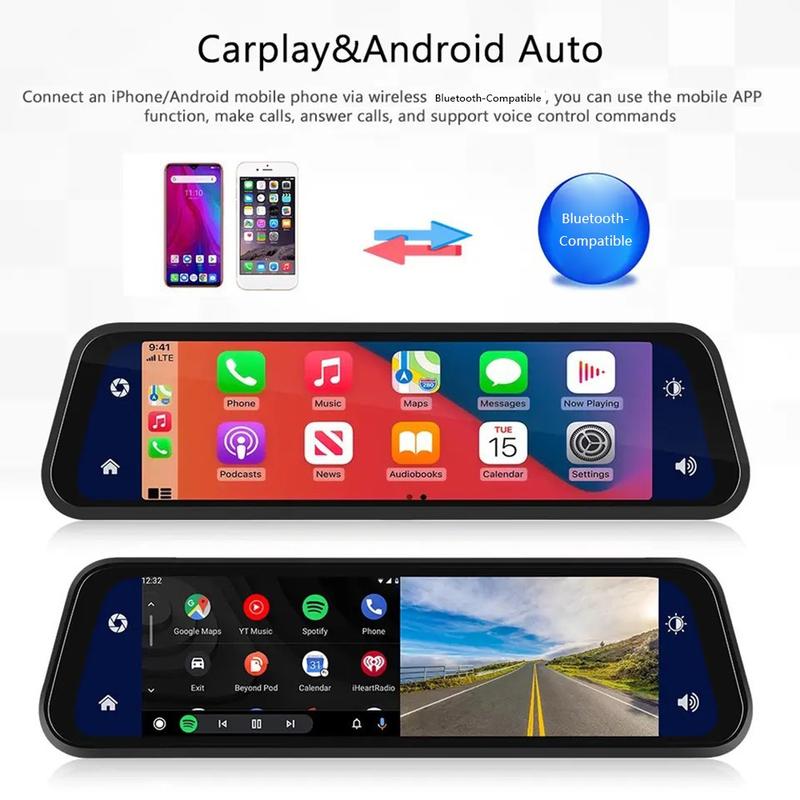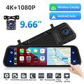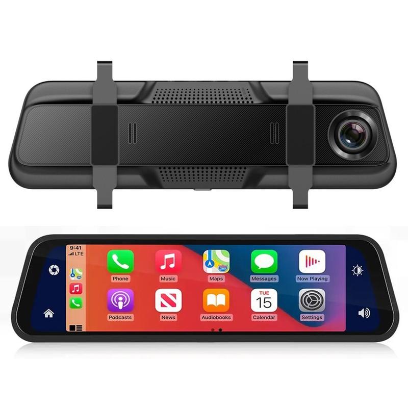 904 Dash Cam con schermo touchscreen da 9.66" e CarPlay - Specchio retrovisore in streaming a tutto schermo 4K e 1080P DVR a doppia lente