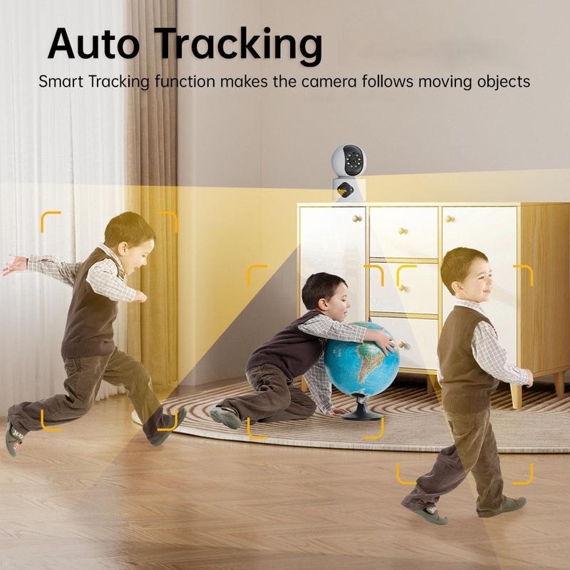 Telecamera di sicurezza WiFi a doppio obiettivo da 4 MP con tracciamento a 360, audio bidirezionale e visione notturna