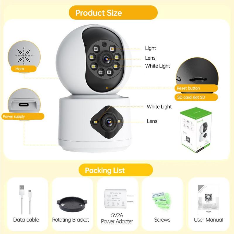 Passate a una protezione più intelligente e più nitida: aggiungete oggi stesso la telecamera di sicurezza Wi-Fi a doppio obiettivo da 4 MP al vostro carrello e godetevi la vera tranquillità, di giorno e di notte.
