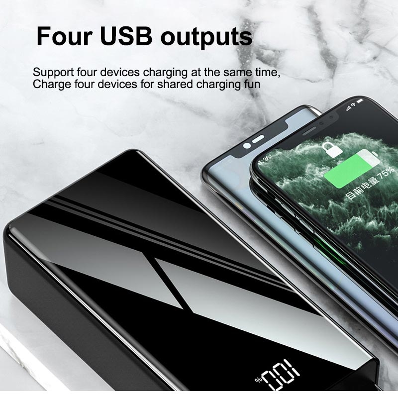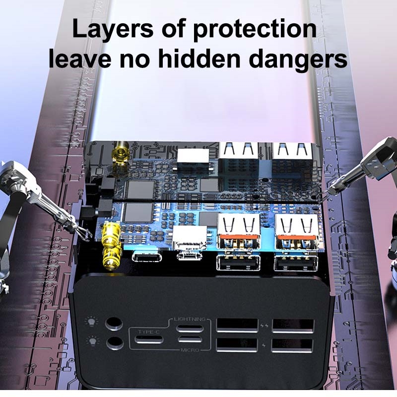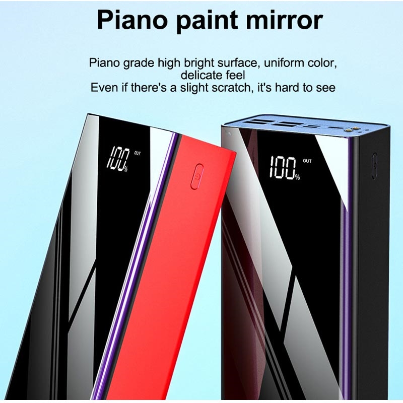 Questo power bank dall'enorme capacità è un modo perfetto per ricaricare rapidamente smartphone, tablet e altri gadget mentre sei in movimento. È dotato di tre porte di uscita USB, un'uscita/ingresso PD di tipo C, illuminazione e ingressi MicroUSB. Con quattro uscite e una capacità della batteria di 50000 mAh, puoi ricaricare fino a quattro dispositivi contemporaneamente, più volte. Inoltre, questo power bank compatto è dotato di un indicatore di stato a LED su una superficie a specchio, così saprai sempre quanta energia è rimasta.