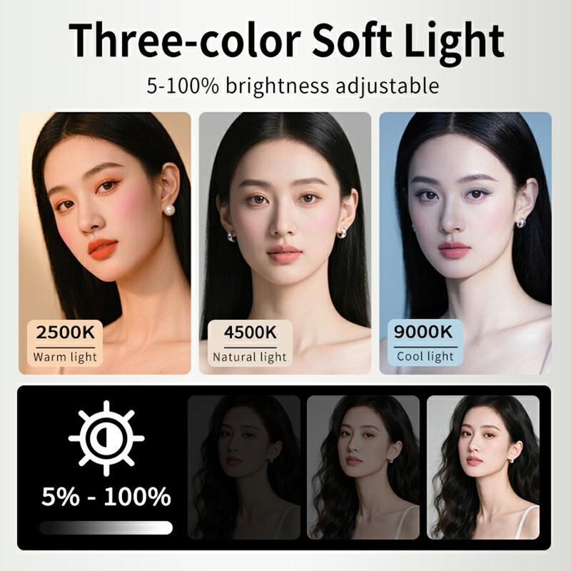 Regola la luce da 2500K, tonalità calda, a 9000K, luce diurna fredda, per adattarsi a qualsiasi ambiente di ripresa. Perfetto per lo streaming live, la fotografia di prodotto, i ritratti e le teleconferenze.