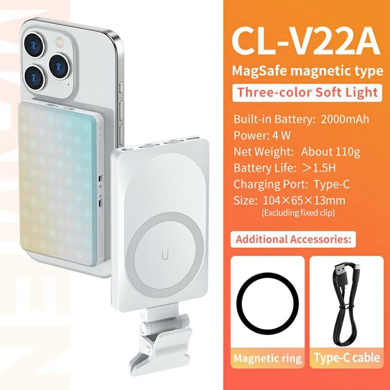 La luce di riempimento a LED magnetica portatile V22A offre un'illuminazione potente e precisa in un design compatto, ideale per smartphone, telecamere e configurazioni di streaming. Grazie alla ricarica Type-C, alla luminosità regolabile e all'ampia gamma di temperature di colore, garantisce risultati eccellenti sia che si tratti di riprese al chiuso, all'aperto o in movimento.