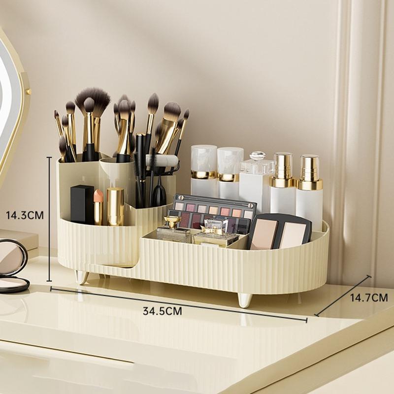 Vassoio di stoccaggio dell'organizzatore del trucco con supporto rotante per pennelli - scaffale per cosmetici in ABS+PET per il tavolo da toeletta e il bancone del bagno
