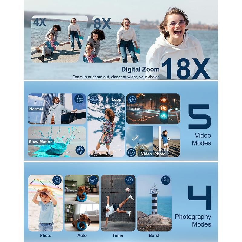 - Video 4K Ultra HD e fotografie da 80MP - Registra video 4K cristallini a 30FPS e scatta foto da 80MP con dettagli sorprendenti. Lo zoom digitale 18X consente di avvicinarsi all'azione senza sacrificare la qualità.