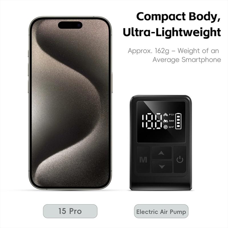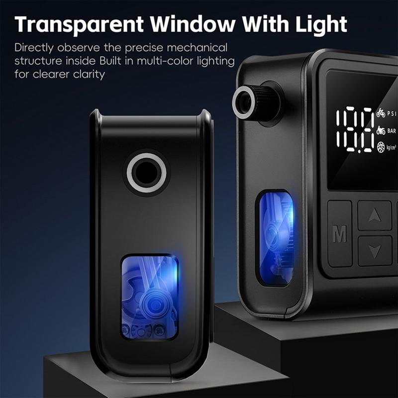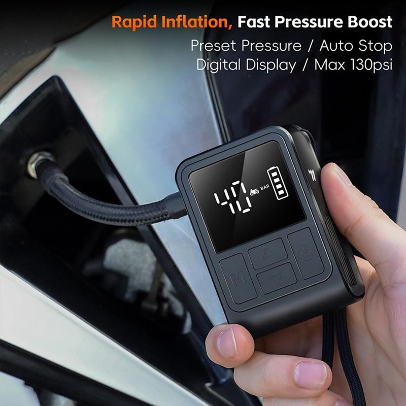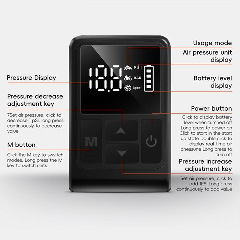 Le pompe elettriche portatili come questa utilizzano un sistema compatto di pistoni motorizzati per generare un'elevata pressione dell'aria in un formato ridotto. Il display digitale e le funzioni di spegnimento automatico si ispirano ai compressori professionali da garage, offrendo funzionalità avanzate in un design facile da trasportare.