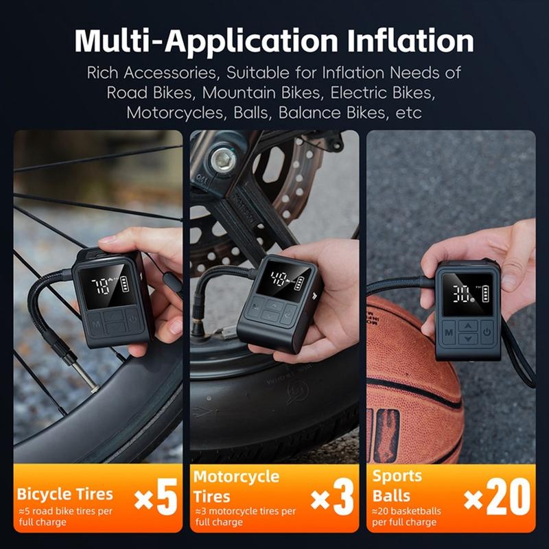 Questo compressore d'aria portatile WEST BIKING è ideale per i motociclisti che desiderano un gonfiatore affidabile e facile da trasportare. La sua funzione di preimpostazione consente un gonfiaggio non presidiato, mentre il display digitale assicura una pressione sempre precisa. Che si tratti di ciclismo, motociclismo o gonfiaggio di palloni sportivi, questa pompa combina convenienza, potenza e precisione in un unico dispositivo compatto.