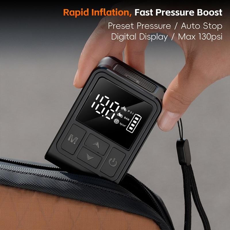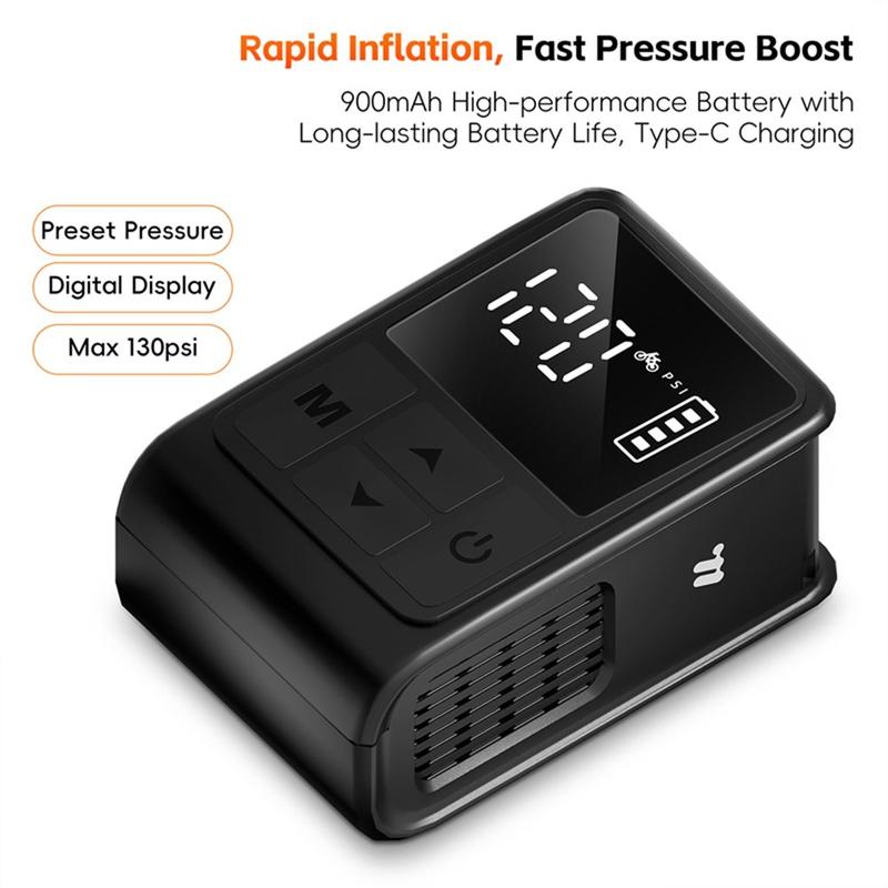 West Biking YP0711196 Pompa elettrica per bicicletta / Compressore d'aria digitale portatile con alta pressione da 130 PSI e batteria ricaricabile