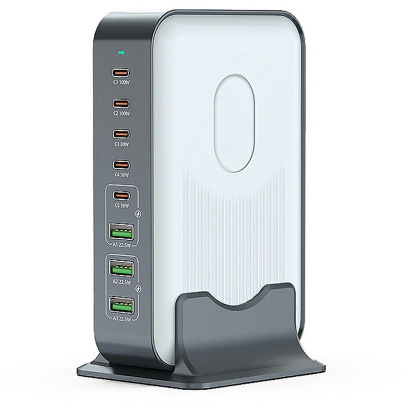 La stazione di ricarica da tavolo WLX-F8B 200W è un hub di ricarica rapida GaN ultra potente, progettato per sostituire più adattatori ingombranti con una soluzione compatta ed efficiente. Con cinque porte USB-C Power Delivery e tre porte USB-A Quick Charge, supporta la ricarica simultanea di laptop, tablet, smartphone, cuffie e dispositivi di gioco, il tutto da un'unica presa.