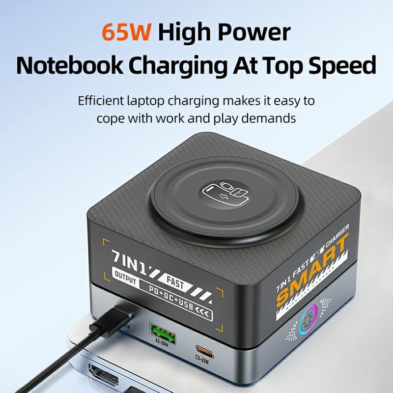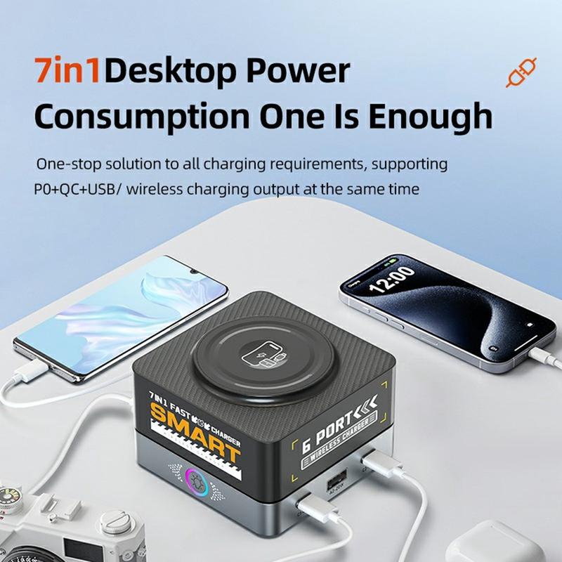 Il caricabatterie da tavolo WLX-R8C 7-in-1 combina una potente ricarica rapida, la ricarica wireless magnetica e la comodità della multiporta in un unico hub di alimentazione compatto. Con una potenza totale di 80W e il supporto per PD, QC e PPS, ricarica in modo efficiente laptop, tablet, telefoni e accessori in una sola volta: perfetto per gli spazi di lavoro, gli uffici domestici e i viaggi.