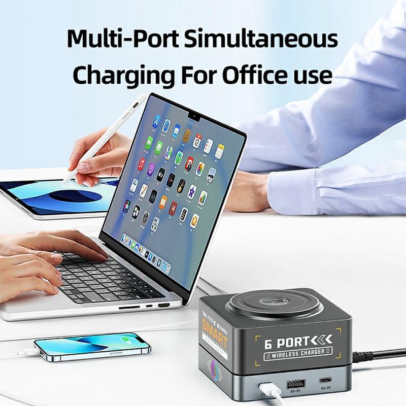 Ricarica 7 in 1 con 6 porte + pad wireless magnetico