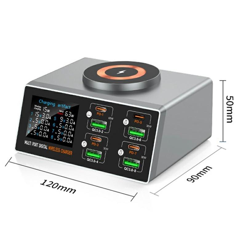 - Hub di ricarica 9 in 1 con 8 porte cablate + 1 caricatore magnetico wireless