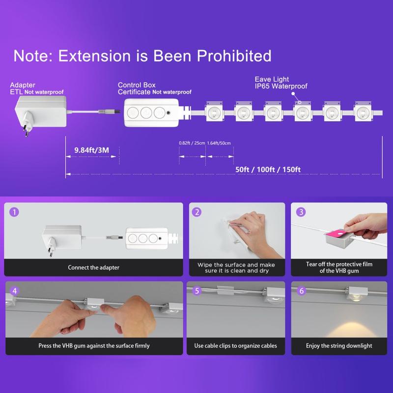 WY021 Impermeabile Luce di gronda intelligente per esterni / Luce d'ambiente con sincronizzazione musicale con controllo app, controllo vocale