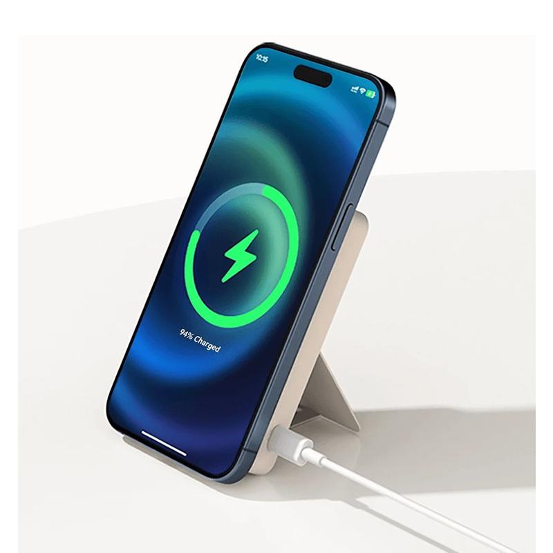 Nonostante le dimensioni leggere e compatte, la capacità di 6000mAh garantisce un'autonomia supplementare affidabile per le attività quotidiane. Il cavalletto incorporato consente di posizionare il telefono in orizzontale, rendendolo perfetto per guardare video, navigare o effettuare videochiamate durante la ricarica.