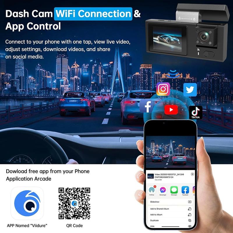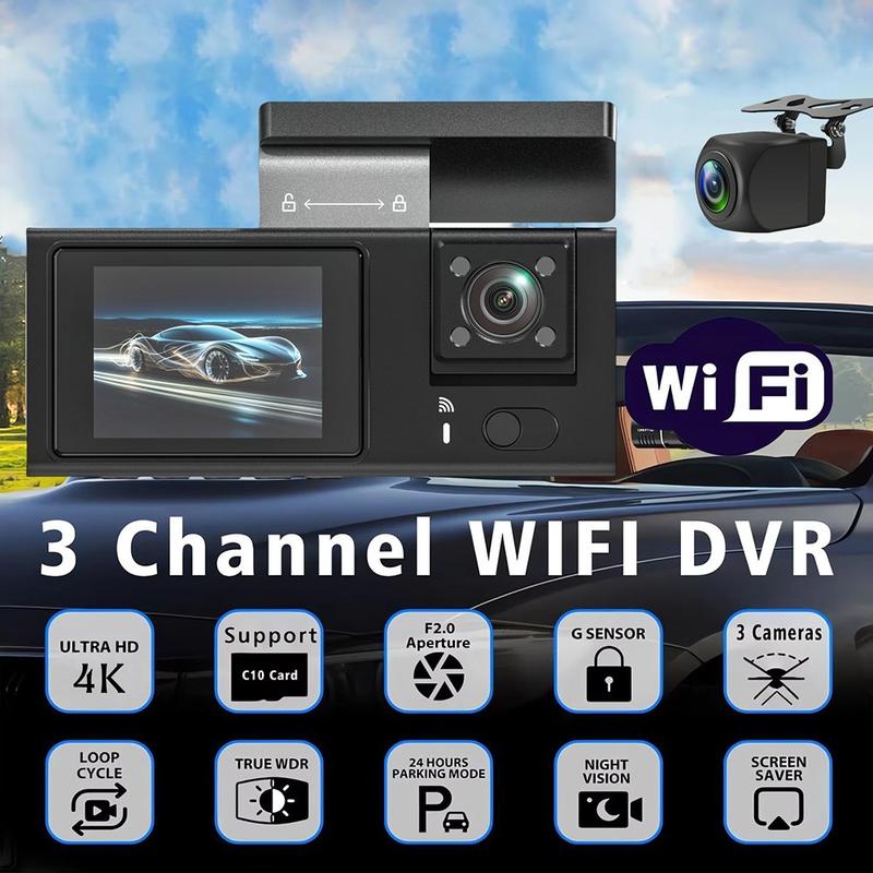 Y08 Dash Cam 4K a tre obiettivi - DVR per auto anteriore, interno e posteriore con WiFi, schermo IPS da 2" e sensore G
