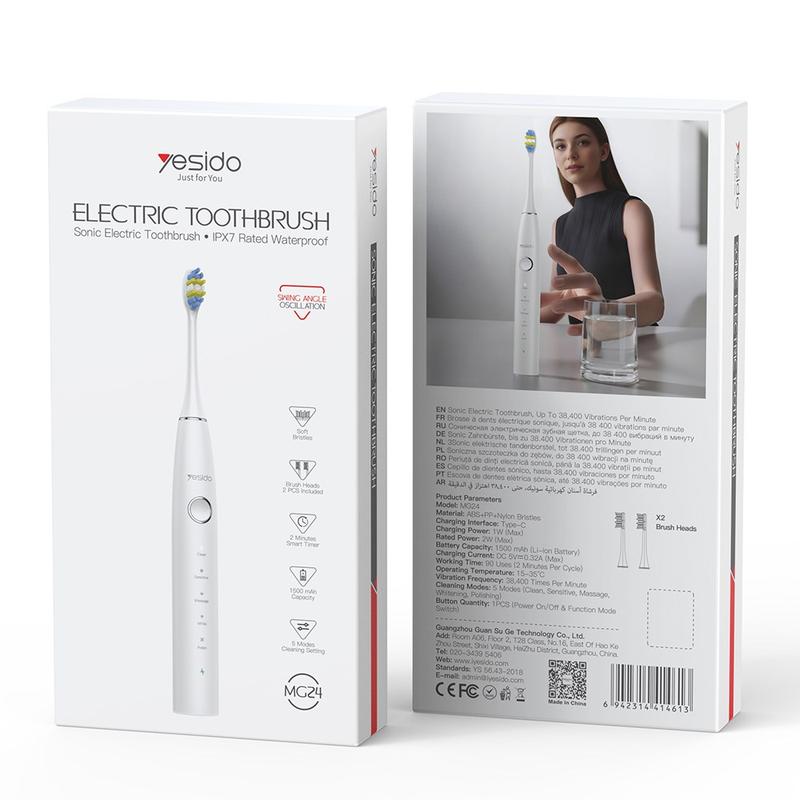 YESIDO MG24 combina forti prestazioni sonore, lunga durata della batteria, resistenza all'acqua e modalità di pulizia personalizzabili: un aggiornamento affidabile ed efficace per la vostra routine quotidiana di igiene orale.
