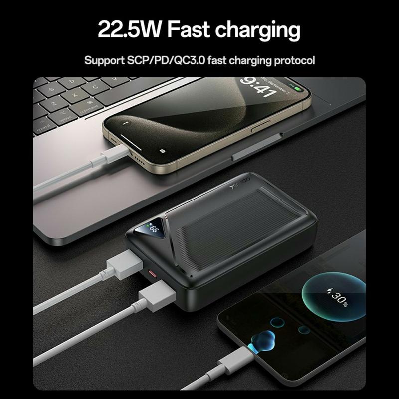 Compatto ma potente, YESIDO YP82 Power Bank è progettato per mantenere i vostri dispositivi carichi ovunque vi porti la vita. Con una capacità di 10000mAh e una tecnologia di ricarica rapida da 22.5W, alimenta in modo efficiente smartphone, tablet e altri dispositivi compatibili USB. Il chiaro display digitale fornisce lo stato della batteria in tempo reale, mentre il sistema di sicurezza intelligente garantisce prestazioni ottimali senza surriscaldamento. Leggero e portatile, è il compagno ideale per i viaggi, il lavoro e lo stile di vita in movimento.