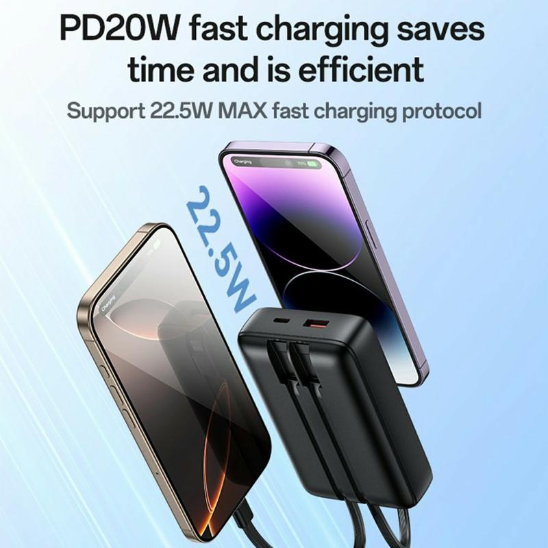 A differenza dei power bank standard, YESIDO YP85 combina un'elevata capacità con cavi di ricarica rapida integrati e un chiaro display digitale. Grazie alla funzionalità Type-C a doppio ingresso/uscita e al sistema di protezione intelligente, è stato progettato per garantire convenienza, prestazioni e sicurezza, il tutto in un'unità elegante e portatile.