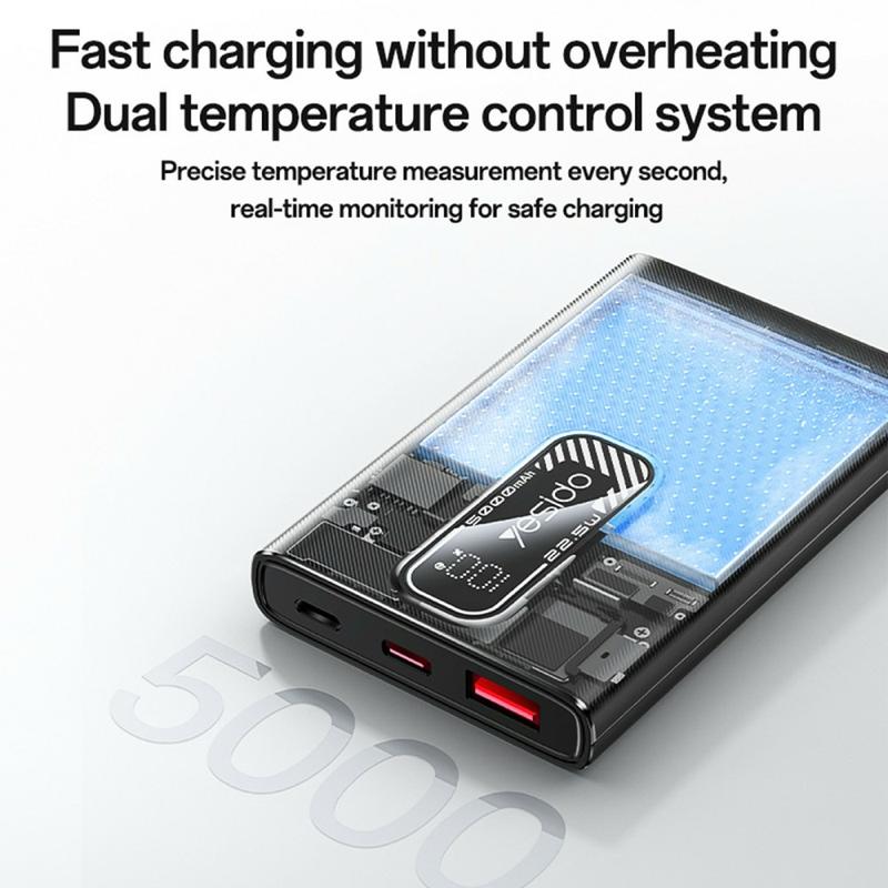 Yesido YP92 Ultra-Thin Power Bank 5000mAh - Ricarica rapida da 22.5W con display digitale
