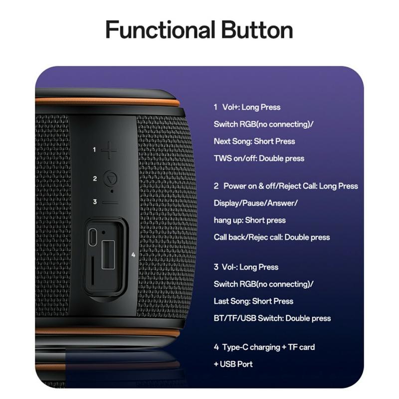 - Opzioni di riproduzione versatili - Supporta scheda TF, radio FM, USB, accoppiamento TWS, ingresso AUX e Bluetooth.
