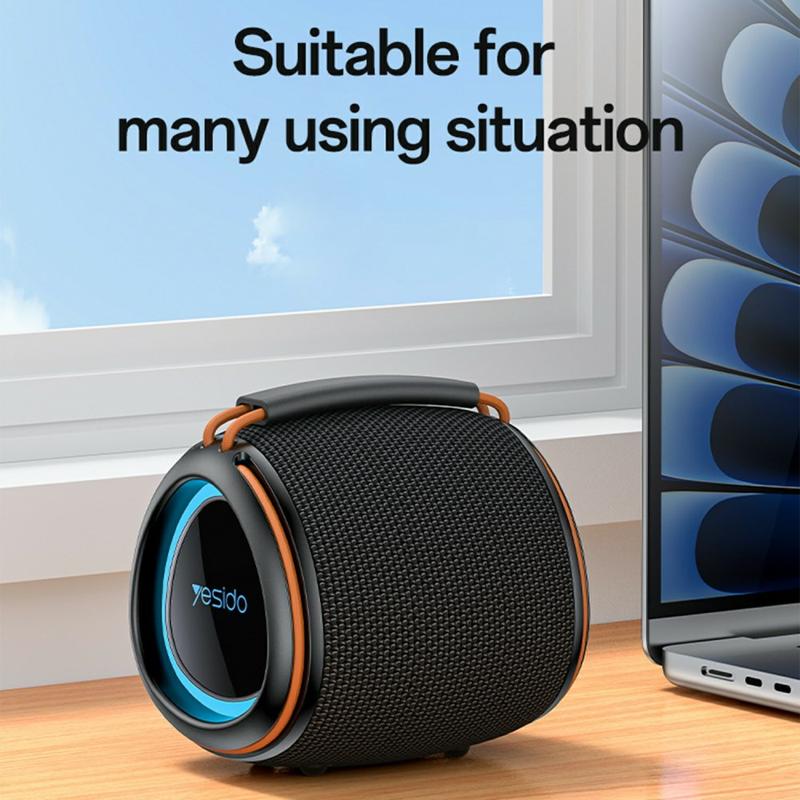 YESIDO YSW40 è ideale per chi cerca un suono portatile con un tocco in più. Le sue dimensioni compatte lo rendono facile da trasportare, mentre la funzione TWS consente di accoppiare due altoparlanti per un effetto stereo amplificato. Le luci RGB aggiungono un'atmosfera da festa, rendendolo adatto sia per l'uso domestico che per i raduni all'aperto.