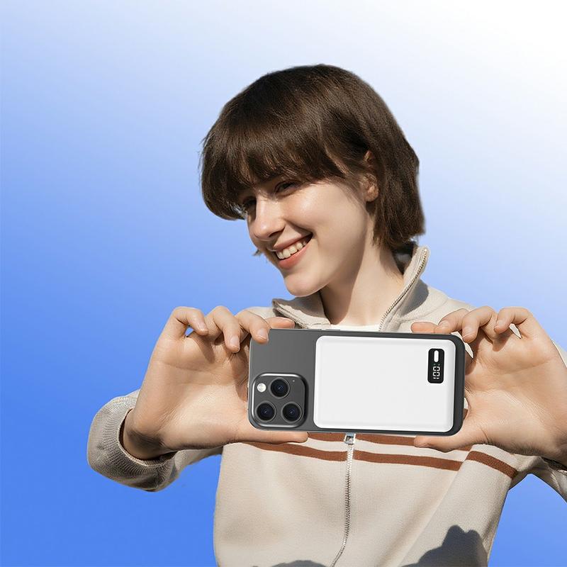 Dotato di una porta USB-C Power Delivery (PD) da 30W, il power bank carica i dispositivi ad alta velocità, ideale per alimentare rapidamente smartphone, auricolari e altri dispositivi USB-C.