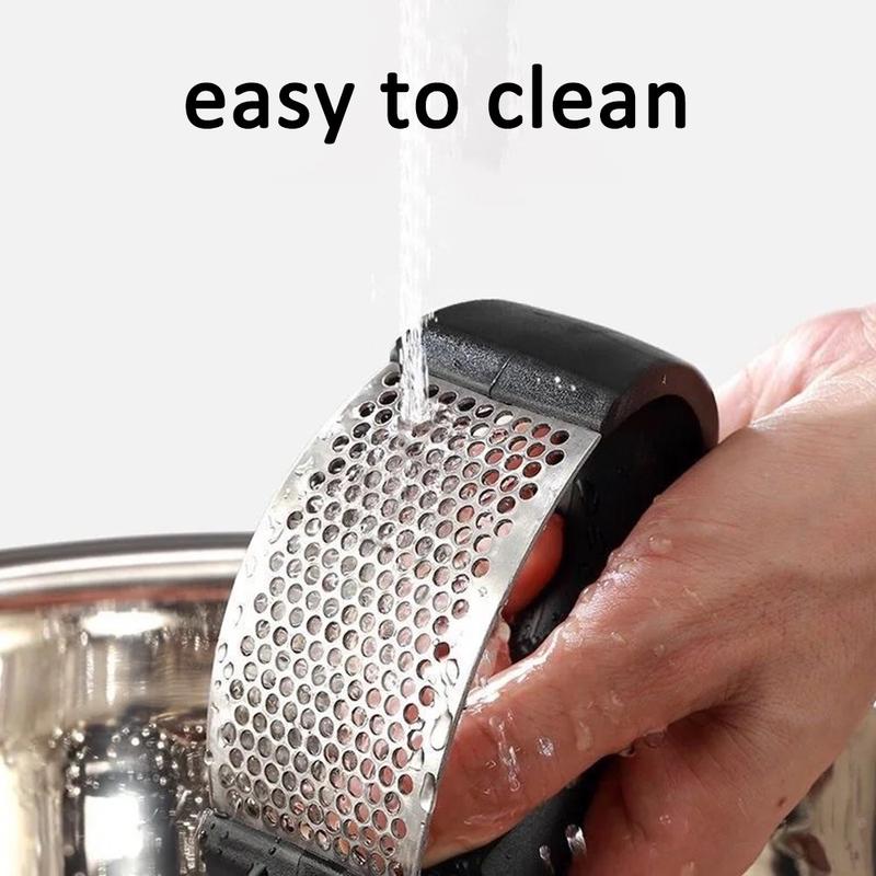 - Facile da pulire e conservare - L'aglio si raccoglie ordinatamente sulla superficie della pressa per una rapida pulizia. Compatto e portatile, trova facilmente posto nei cassetti o nei portautensili.