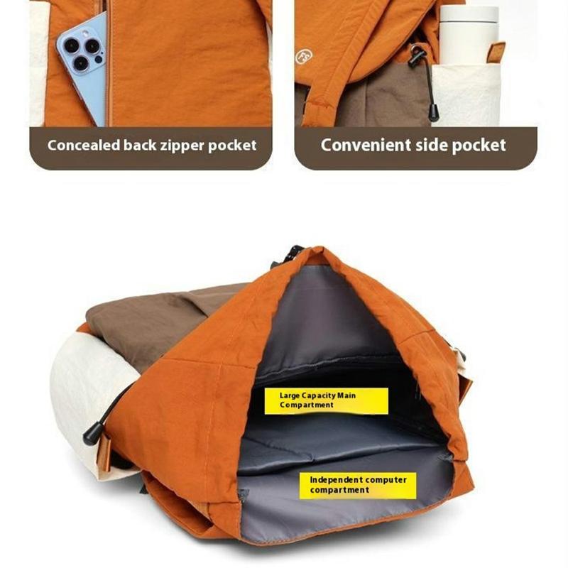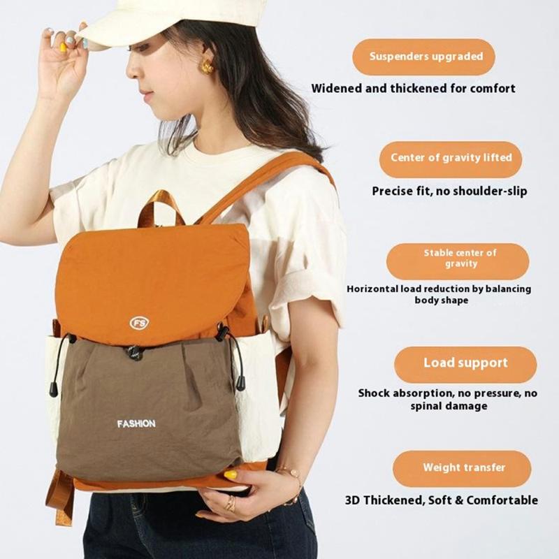 Aggiungete un tocco di fascino vintage al vostro stile quotidiano con questo zaino in tela color block. Caratterizzata da tonalità terrose a contrasto e da un classico design con patta, questa borsa leggera combina moda e praticità. Con un peso di soli 0,26 kg, offre una grande capacità senza ingombro, rendendola perfetta per la scuola, il lavoro, i brevi viaggi o anche come elegante borsa per pannolini. L'esterno in tela resistente e la fodera in poliestere garantiscono un utilizzo duraturo, mentre la scritta "FASHION" aggiunge un tocco trendy al look di ispirazione vintage.
